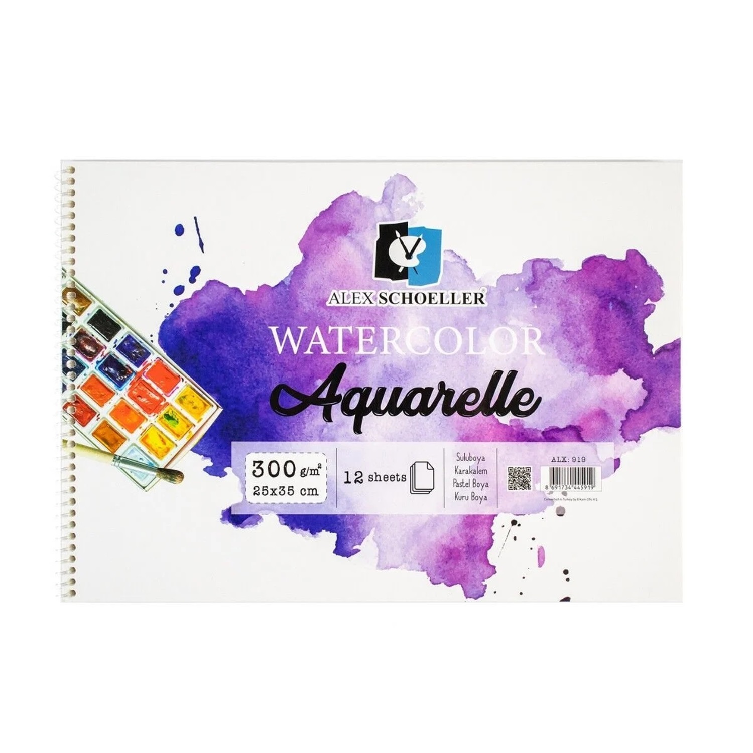 Alex Schoeller 25x35 300 gr Spiralli Suluboya Defteri 12 yp ALX-919